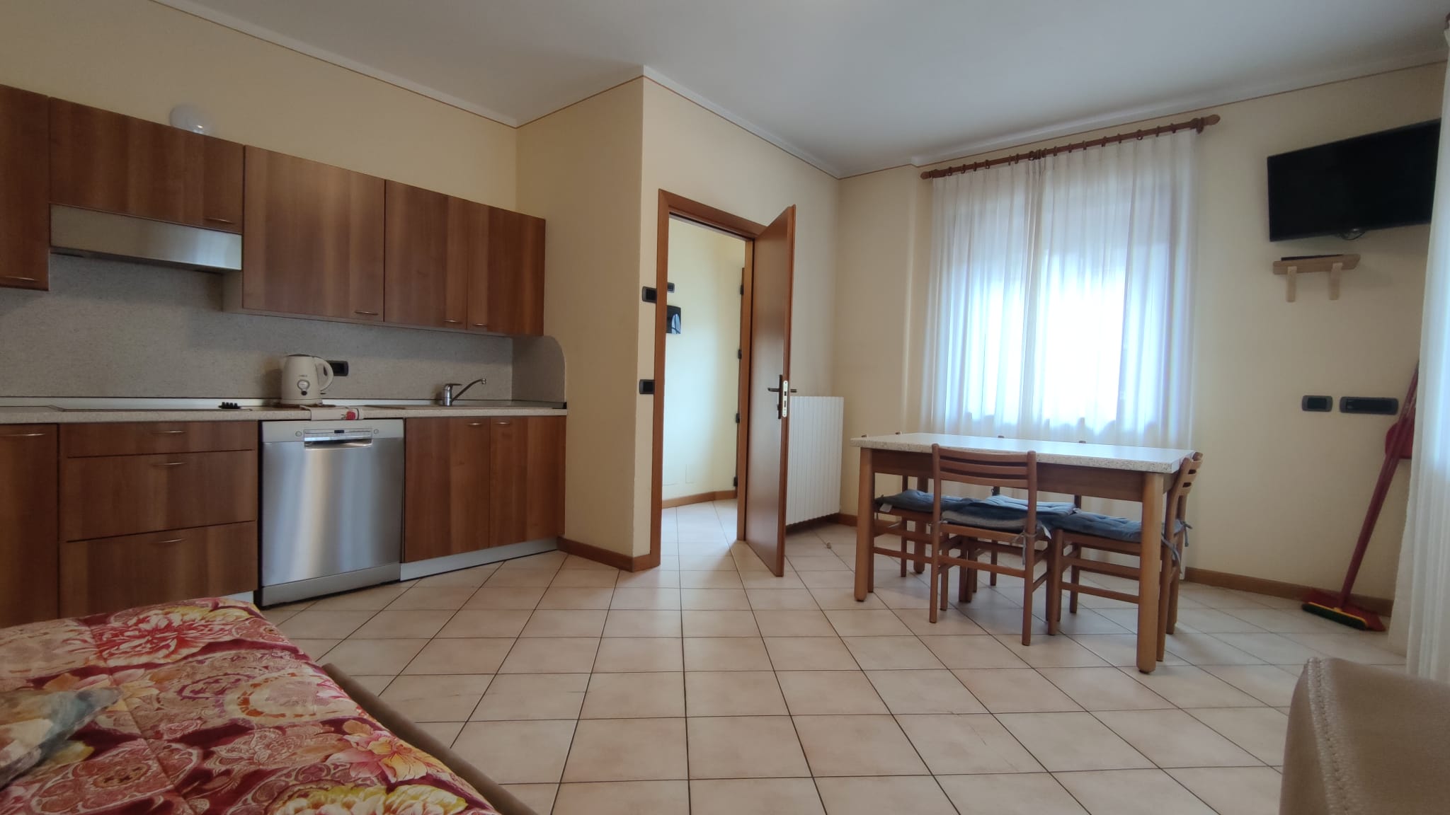 L'appartamento al piano terra è composto da soggiorno con divano-letto doppio e angolo cottura (forno microonde, piastra elettrica, frigorifero con piccolo freezer, bollitore), camera da letto doppia e bagno con doccia (phon) . Tv Sat in soggiorno, Wi-fi , balcone.Parcheggio esterno e posto auto in garage gratuito . Durante la stagione invernale i soggiorni sono da venerdì a venerdì