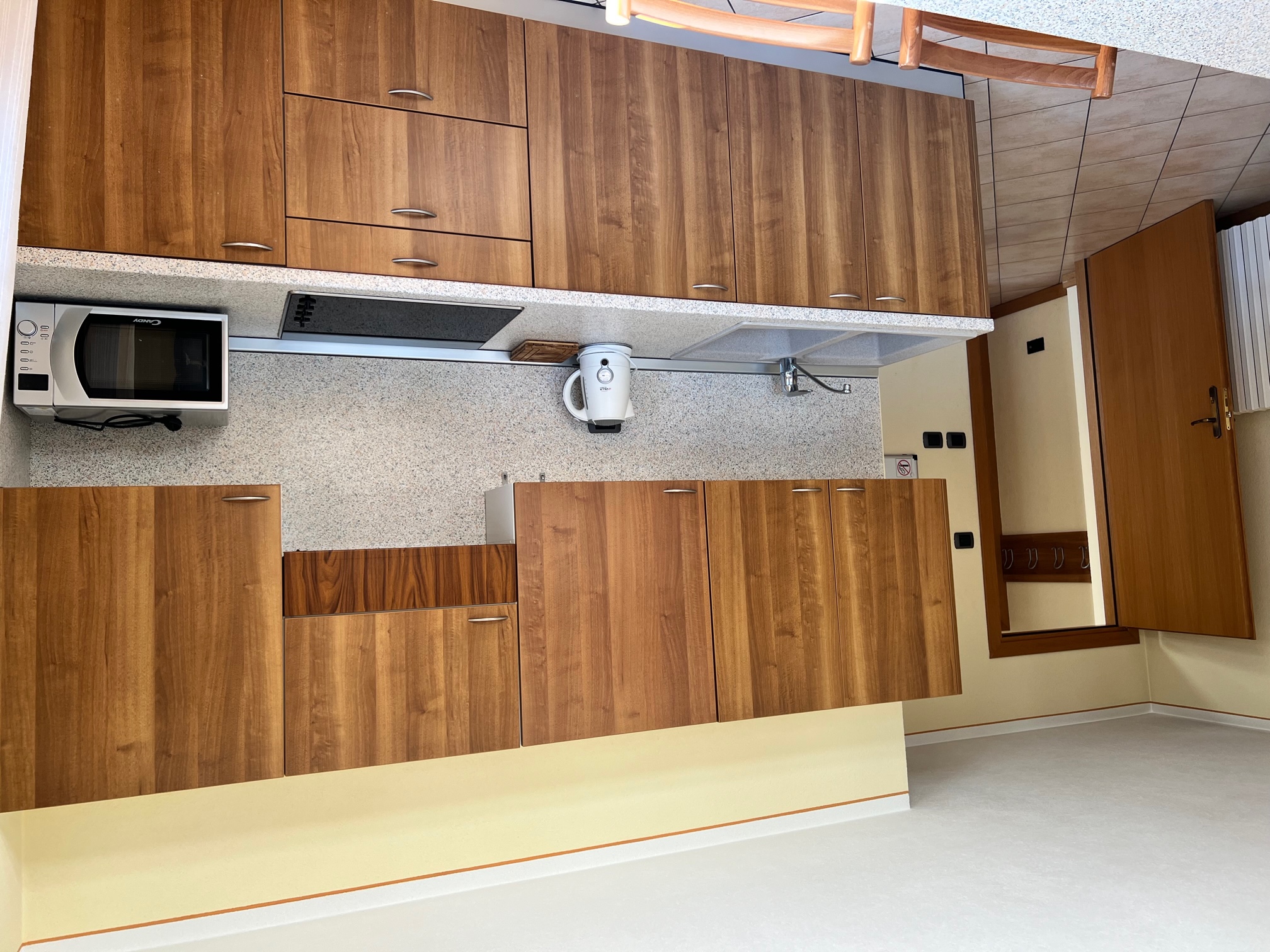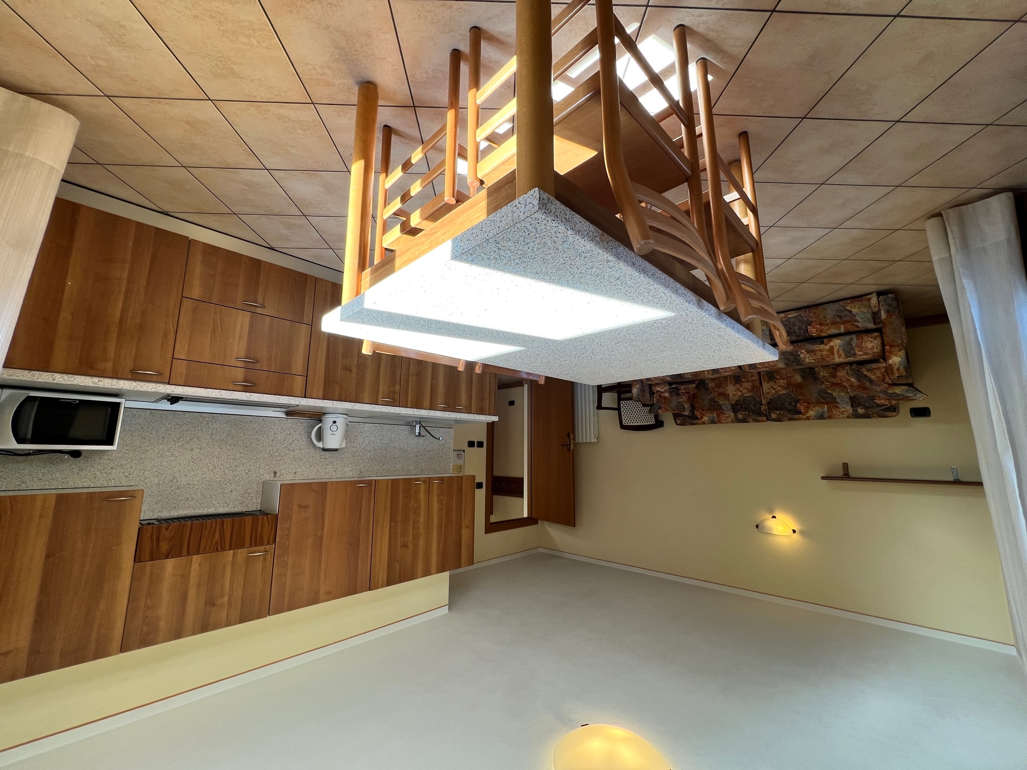 L'appartamento al primo piano è composto da soggiorno con divano-letto doppio e angolo cottura (forno microonde, piastra elettrica, frigorifero con piccolo freezer, bollitore), camera da letto doppia e bagno con doccia (phon) . Tv Sat in soggiorno, Wi-fi , balcone. Parcheggio esterno e posto auto in garage gratuito . Durante la stagione invernale i soggiorni sono da venerdì a venerdì